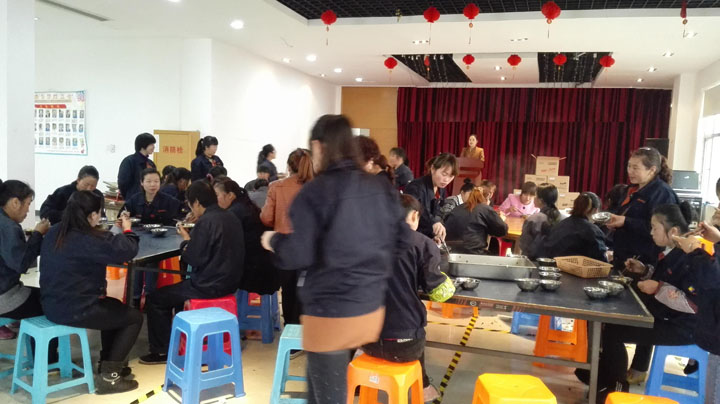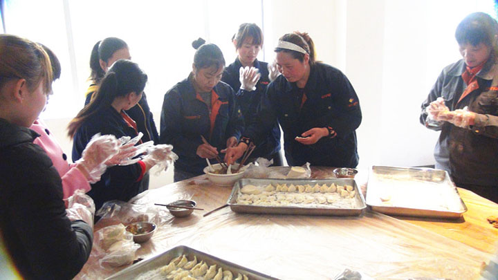 2016年3月8日下午,公司在一樓職工活動室為全體女職工過了一個別開生面的女神節(jié)。 食堂提前準備好了餃皮和餡料,70多名女員工全部自己動手包餃子,送到食堂煮好,再端回來熱熱鬧鬧吃餃子,最后領取婦女節(jié)慰問禮品。各種形狀的餃子,代表了不同地域的人。代表著一家團圓的餃子,讓長年在外務工的員工體會到了家的溫暖。